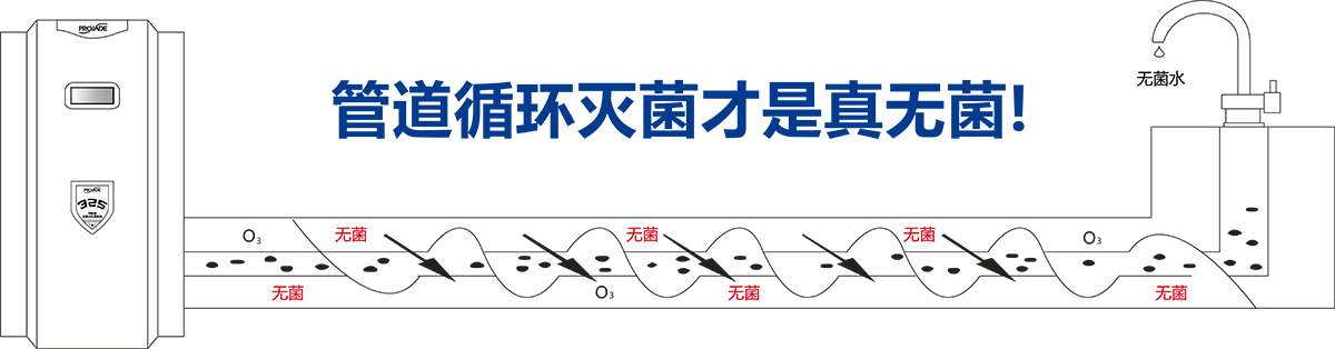 設備自身制造滅菌因子,定時循環(huán)滅菌,確保科室管道及出水無菌